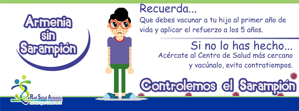 En busca de prevenir el contagio del sarampión en nuestra población, Red Salud Armenia ESE viene desarrollando acciones informativas que ayuden a los usuarios a identificar posibles casos de sarampión en su entorno y a evitar el contagio a partir del cumplimiento del esquema de vacunación de sus hijos, en el cual, se debe aplicar una primera dosis al año de vida y un refuerzo a los 5 años.
