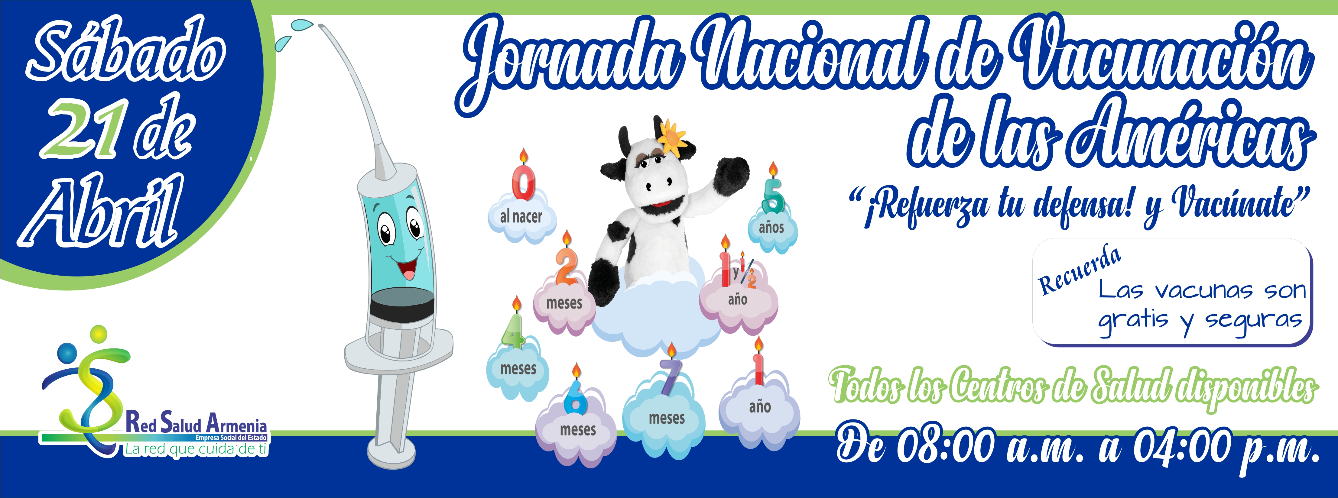 La AlcaldÃa de Armenia, la SecretarÃa de Salud Municipal y Red Salud Armenia ESE, participarán el próximo 21 de abril en la jornada nacional de vacunación ¡Refuerza tu defensa! y vacúnate; la cual es liderada por el Ministerio de Salud en todo el territorio nacional.