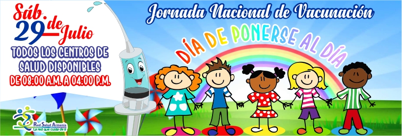 Participando en acciones que ayuden a cumplir las metas propuestas en vacunación para el 2017, Red Salud Armenia ESE participará en la Jornada Nacional de Vacunación “DÃa de ponerse al dÃaâ€, la cual se realizará el sábado 29 de julio y es liderada por el Ministerio de Salud en todo el territorio colombiano.