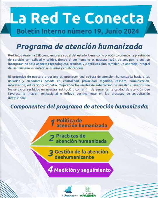 Se realiza boletín en el mes de junio, el cual da a conocer como desde el programa de atención humanizada en Red Salud Armenia E.S.E. se trabajan los temas sobre dignidad y trato respetuoso.