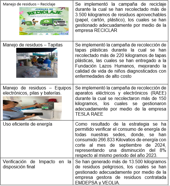 Desde el eje de Responsabilidad Social en la vigencia 2024 se han llevado a cabo las siguientes iniciativas: