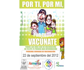La AlcaldÃa de Armenia, la SecretarÃa de Salud Municipal y Red Salud Armenia ESE, invitan a toda la comunidad, para que este sábado 22 de septiembre, desde las 8 de la mañana hasta las 4 de la tarde, asistan a la Jornada Nacional de Vacunación “se la ponemos fácil, dÃa de ponerse al dÃaâ€