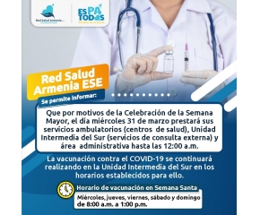 El dÃa miércoles 31 de marzo prestará sus servicios ambulatorios (centros de salud), Unidad Intermedia del Sur (servicios de consulta externa) y área administrativa hasta las 12:00 a.m.